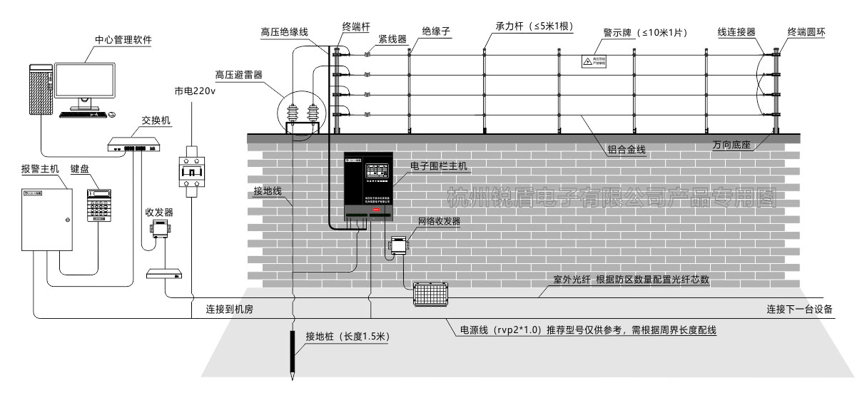 防范嚴(yán)密主動防護(hù):可以依據(jù)地形任意架設(shè),沒有死角,消除安全盲點(diǎn),企圖跨越時(shí)給與電擊,現(xiàn)場警示標(biāo)志和聲光報(bào)警器給入侵者以極大的心理威懾作用;起到很好的主動防護(hù)效果。
