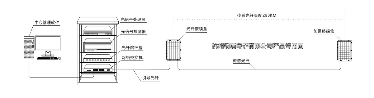 精確定位型光纖入侵探測系統(tǒng)通過一芯光纜實現(xiàn)擾動信號的感知與傳輸。系統(tǒng)的光路子系統(tǒng)和信號處理子系統(tǒng)分別進行振動檢測和振動定位功能。系統(tǒng)采用了高速數(shù)據(jù)采集與處理技術(shù),因而信號處理子系統(tǒng)可以對振動信號進行高速逐點采集與定位,以實現(xiàn)全傳感光纜布防周界上實時的入侵振動精確定位功能,系統(tǒng)報警響應時間≤2s,目前定位精度最低可達2米 。